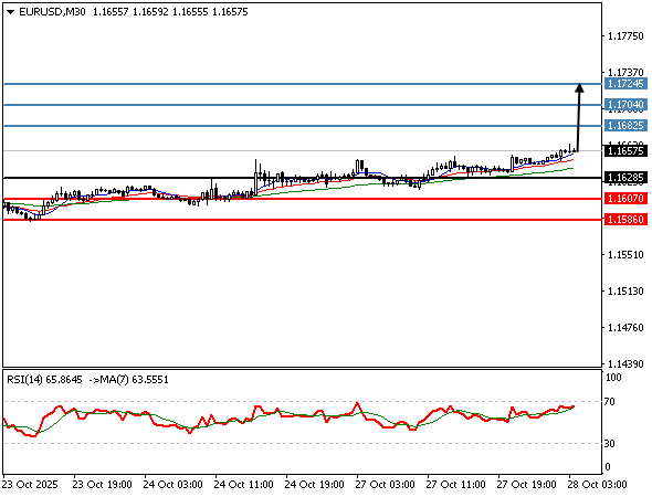 Technical View: مركز شراء طويل فوق 1.1628. الهدف 1.1682. الإحتمال البديل كسر تحت 1.1628, لفتح 1.1607.