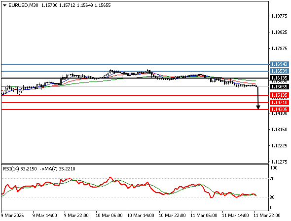 | يورو/دولار | 11-03-2026 03:00:00 GMT | المدى القصير | مرجح الصعود ![]() | 1.1625 | 1.1561 | 1.1670 |