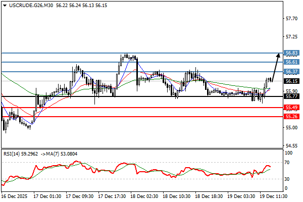 | النفط الأمريكي الخام | 19-12-2025 12:18:00 GMT | المدى القصير | مرجح الصعود ![]() | 56.15 | 55.77 | 56.37 |
