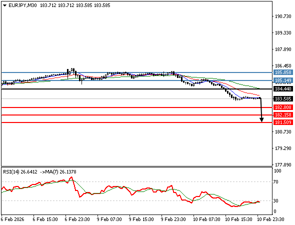 | يورو/ين | 10-02-2026 03:27:00 GMT | المدى القصير | مرجح النزول ![]() | 185.02 | 184.45 | 185.51 |