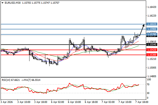 Technical View: مركز شراء طويل فوق 1.1554. الهدف 1.1578. الإحتمال البديل كسر تحت 1.1554, لفتح 1.1542.