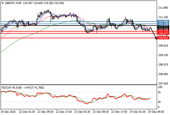 | أسترليني/ين | 24-12-2025 07:25:00 GMT | المدى القصير | مرجح النزول ![]() | 210.53 | 210.37 | 210.69 |