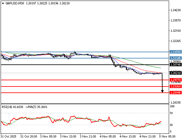 | أسترليني/دولار | 05-11-2025 04:20:00 GMT | المدى القصير | مرجح النزول ![]() | 1.3021 | 1.2977 | 1.3074 |