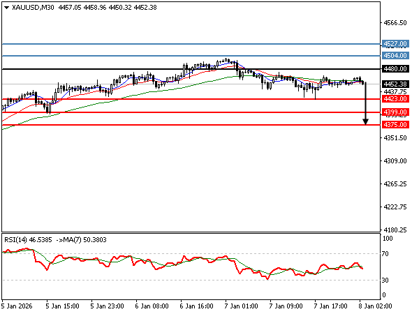 | الذهب | 08-01-2026 00:45:00 GMT | المدى القصير | مرجح النزول ![]() | 4452 | 4423 | 4480 |
