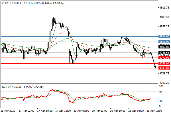 | الذهب | 21-04-2026 02:03:00 GMT | المدى القصير | مرجح النزول ![]() | 4808 | 4774 | 4838 |