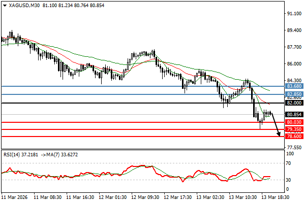 | الفضة | 13-03-2026 18:47:00 GMT | المدى القصير | مرجح النزول ![]() | 80.85 | 80.03 | 82.00 |