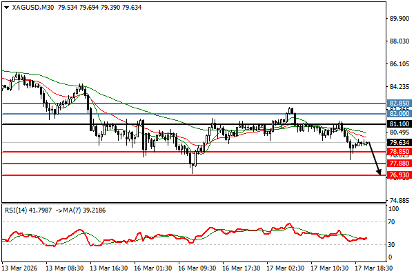 | الفضة | 17-03-2026 01:21:00 GMT | المدى القصير | مرجح النزول ![]() | 80.41 | 79.20 | 82.28 |