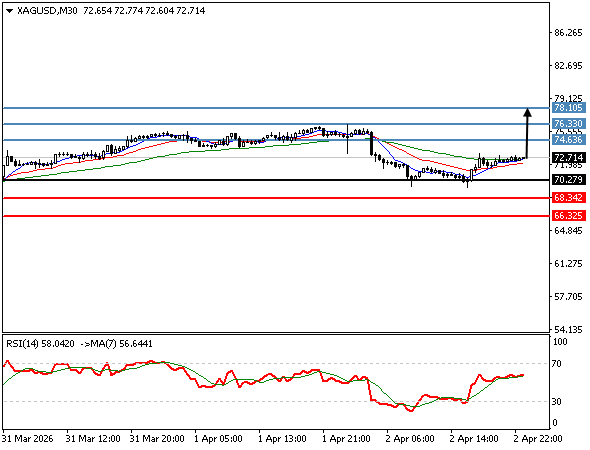 | الفضة | 02-04-2026 20:34:00 GMT | المدى القصير | مرجح الصعود ![]() | 72.71 | 70.27 | 74.63 |