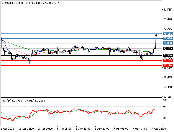| الفضة | 07-04-2026 10:25:00 GMT | المدى القصير | مرجح الصعود ![]() | 72.56 | 72.00 | 73.28 |