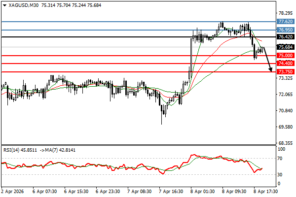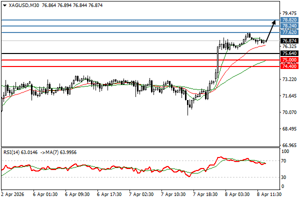 | الفضة | 08-04-2026 09:49:00 GMT | المدى القصير | مرجح الصعود ![]() | 77.09 | 76.54 | 77.81 |
