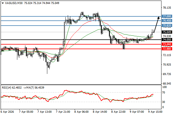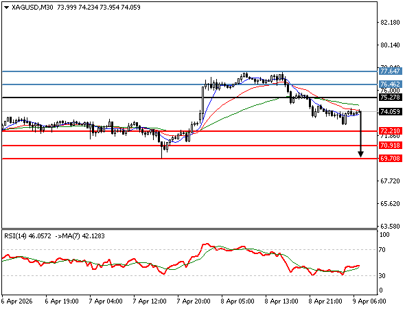 | الفضة | 09-04-2026 08:50:00 GMT | المدى القصير | مرجح النزول ![]() | 74.12 | 73.44 | 74.61 |