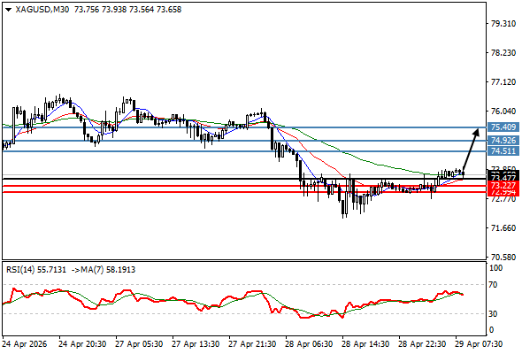 | الفضة | 28-04-2026 06:30:00 GMT | المدى القصير | مرجح النزول ![]() | 73.36 | 72.98 | 74.18 |