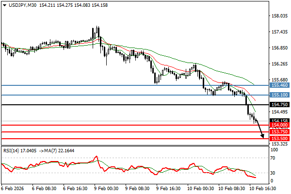 | دولار/ين | 10-02-2026 16:14:00 GMT | المدى القصير | مرجح النزول ![]() | 154.15 | 154.00 | 154.75 |
