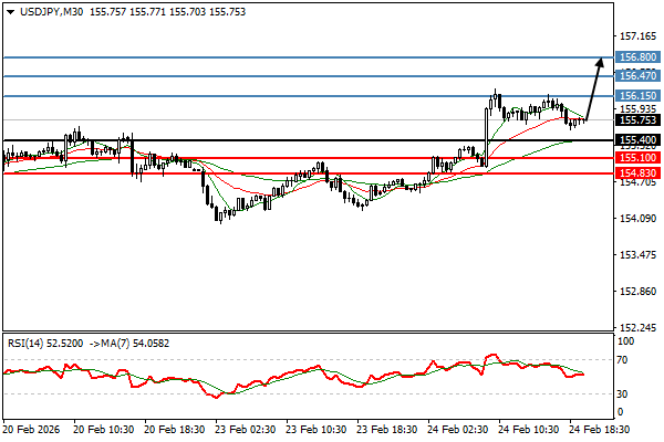 | دولار/ين | 24-02-2026 13:25:00 GMT | المدى القصير | مرجح الصعود ![]() | 155.81 | 154.95 | 156.30 |