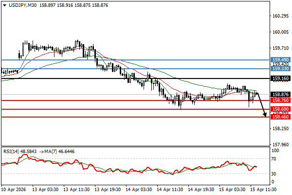 Technical View: مركز بيع قصير تحت 159.16. الهدف 158.76. الإحتمال البديل كسر فوق 159.16, لفتح 159.33.
