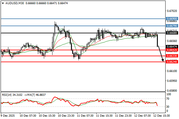 | AUDUSD | 12-12-2025 15:25:00 GMT | Short Term | Downside favored ![]() | 0.6647 | 0.6642 | 0.6668 |