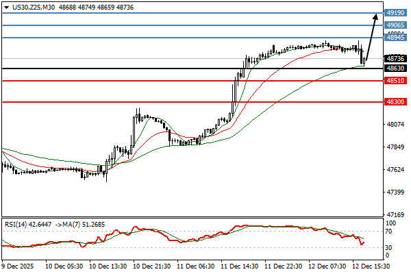 | DOW JONES | 12-12-2025 09:30:00 GMT | Short Term | Upside favored ![]() | 48859 | 48630 | 48945 |