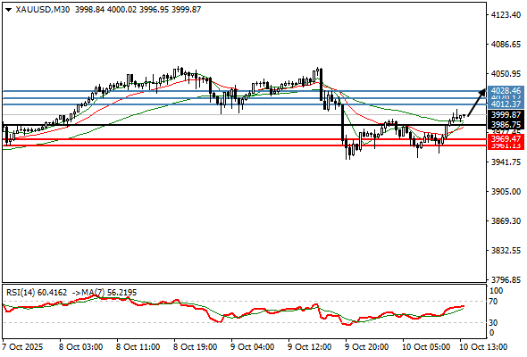 GOLD | 10-10-2025 10:40:00 GMT | Short Term | Upside favored ![]() | 3999.12 | 3986 | 4012 |